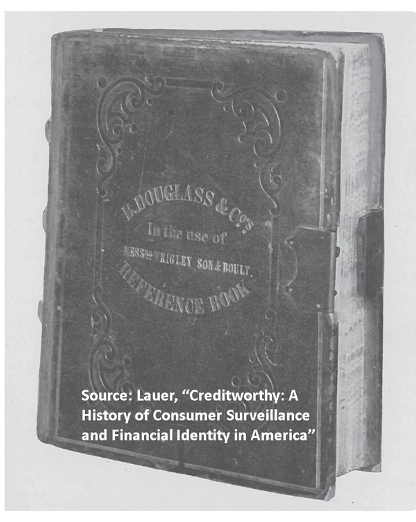 的前身——在南北战争后出现,起初仿效企业征信公司的模式。他们从百货公司、店主和其他服务订阅商那里收集信息,允许商家之间共享客户的信用状况信息。